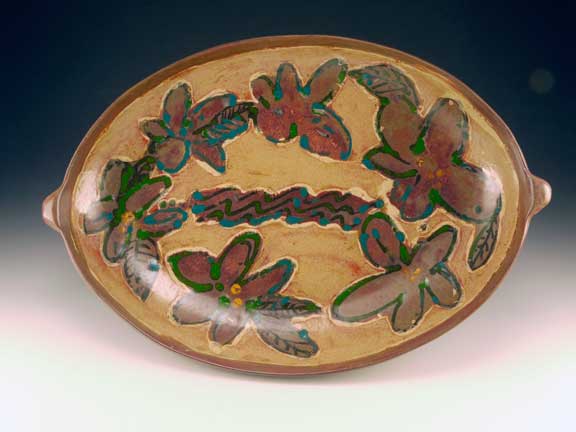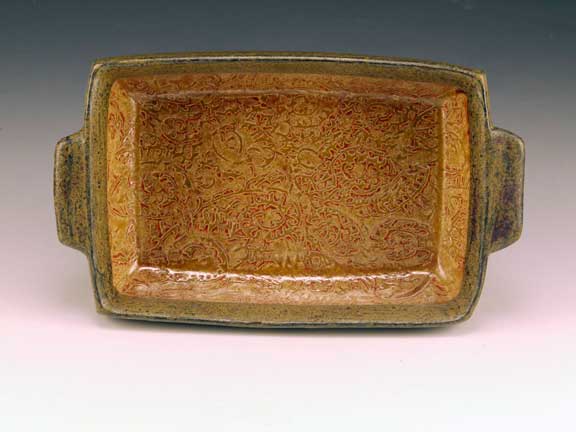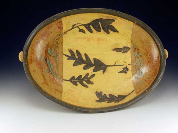 The iron and manganese glaze show featuring Clean Creek products has been bumped back to February to allow some of the participants more time. I’ve done my first round, and photographed some of the results. I still have plans to work on some pieces with the dark cordovan colored-glaze, and I have a lurid-looking cup that isn’t photographed yet, but here are some of the results in fired works. The oval servers are about 15.5″ L and 11 W, 2.5 high. Bring on the pasta. The rectangular trays are the size of a butter dish in length. Click on the thumbnails for bigger images and descriptions. See my June post for glaze info. My best shots at making brown look interesting.